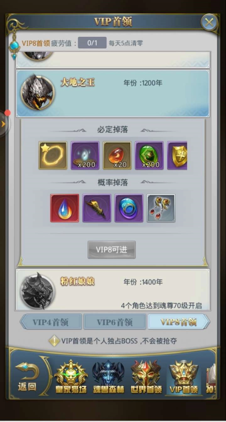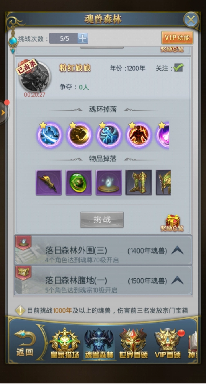 在魂兽森林进行挑战时,存在次数限制,并且该挑战支持多人参与,最终会依据玩家造成的伤害进行排名并发放奖励,排名越靠前,所能获得的奖励就越丰厚。因此,这对玩家的战力有一定要求。若战力不足却想获取优质奖励,可选择在夜深人静时去刷魂兽,此时不会有其他玩家与你争抢资源。此外,还有一种方法是充值成为VIP,VIP用户拥有专属魂兽挑战权限,可独享挑战机会,且对应的奖励也颇为可观。