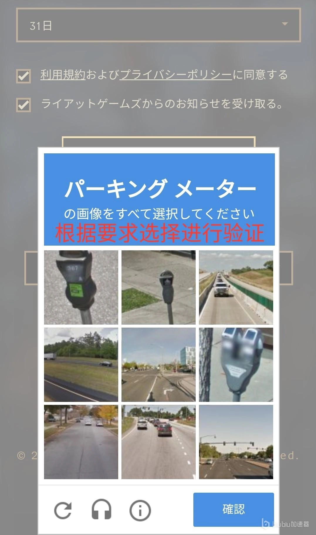 从上到下依次输入邮箱、用户名、密码设定、密码二次确、出生年月日、并勾选两项条约、点击确认,进入验证。