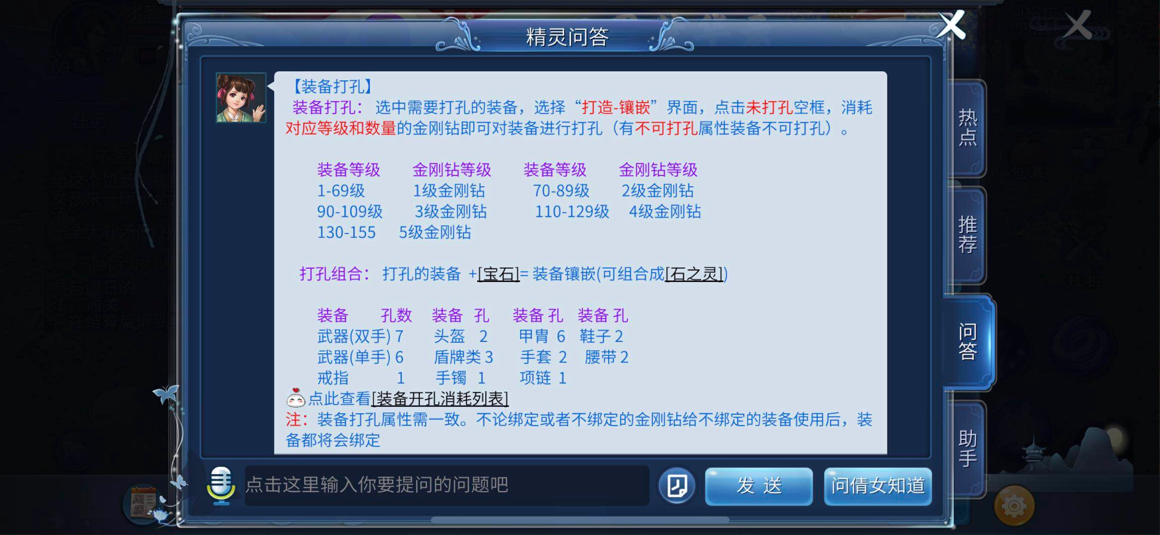 当玩家备齐装备与金刚钻后,即可着手为装备打孔。操作流程为:点击打造界面,随后切换至镶嵌界面,便能开启打孔操作。具体消耗方面,装备的第一至第三个孔,每个均需消耗1颗金刚钻;第四个孔需2颗;第五个孔需6颗;第六个孔需8颗;第七个孔则需消耗16颗金刚钻。