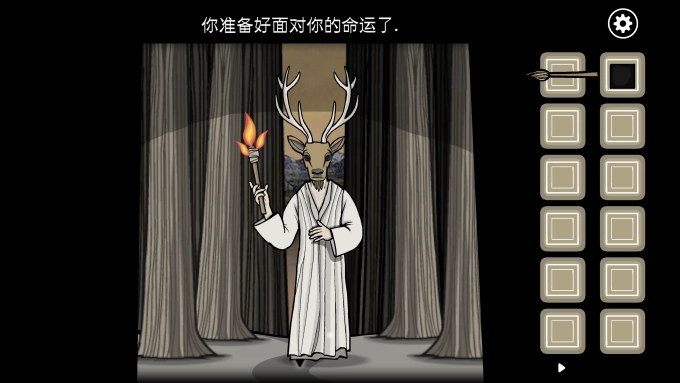 点击第三个鹿雕像进入,进入后系统会根据白子的位置(在线的内外)来判断操作方式:若白子处于外侧,点击下方右键;若白子处于内侧,则点击下方左键。具体点击顺序为右、左、右、左、左、右、右、右、右、右,完成这一系列操作后,就能获得一个鹿面具。