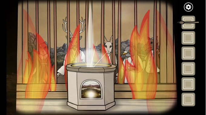 天堂岛上分布着几处图腾柱,找到它们后将横杆向上划动即可点火。每根柱子的中间位置都有独特的图标,这些图标描绘的是游戏全程所经历的某一场灾难。岛上共有9根图腾柱,对应着之前的九次灾难,需要记录下每个图标所代表的灾难在天堂岛中的具体位置。
