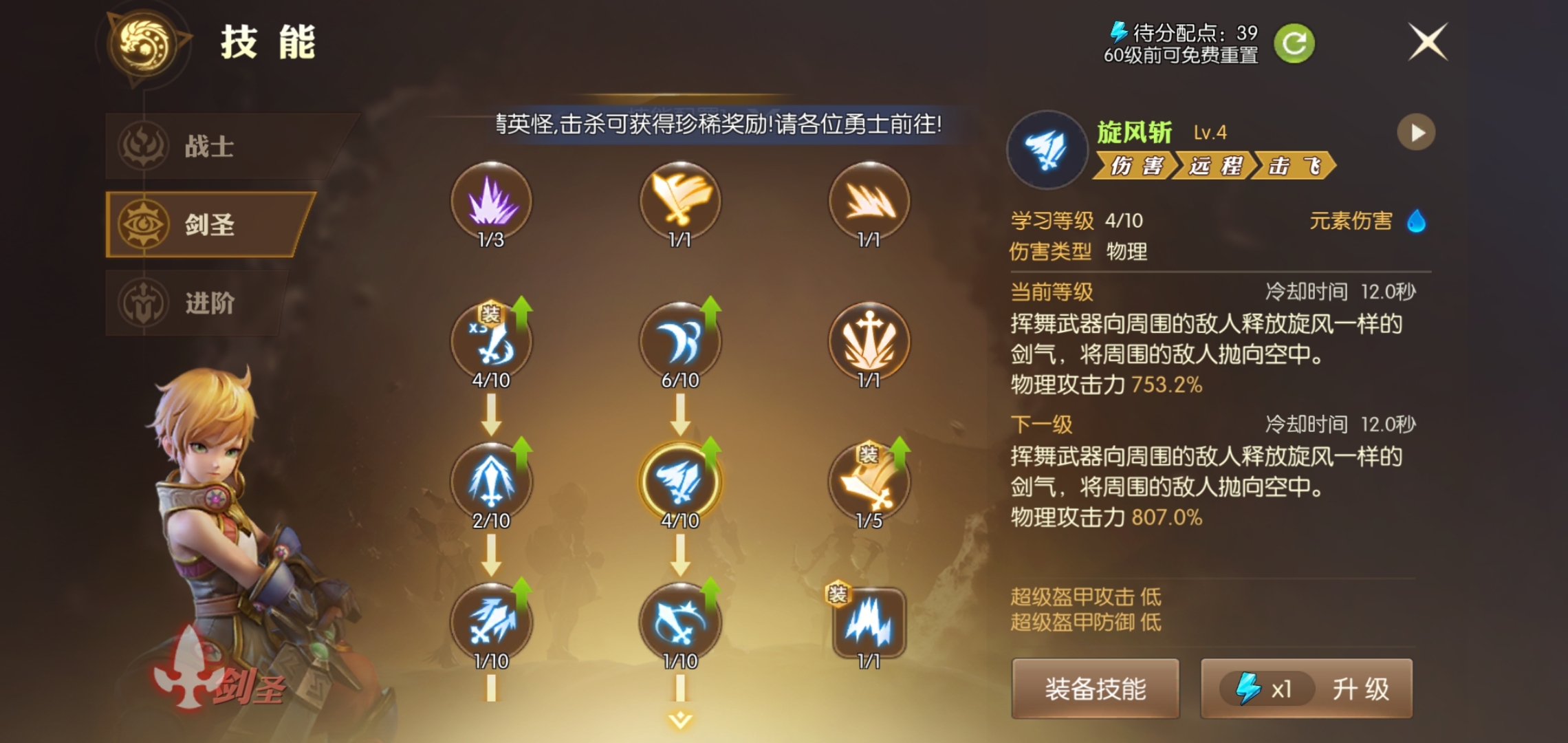 每个职业都得选最适配自身的刷图技能,剑圣刷图自然要点远程攻击的剑气和月光类技能,刷图时基本就当作远程输出职业来操作,技能加点主要围绕龙卷风、重击、月光碎片这类远程技能,这样既能在刷图时确保输出伤害,又能保障自身的安全。