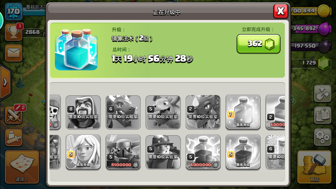 实验室最高可升级至九级,九级实验室能将不少兵种与法术提升到一个很可观的等级,拥有这种等级的兵种去攻打低本玩家,简直就像探囊取物一样轻松。