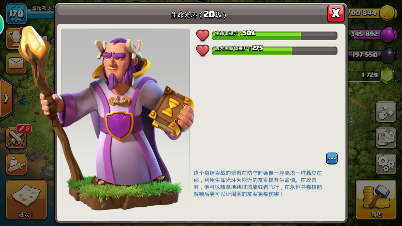 野蛮人之王的存在是吸收伤害,弓箭女王的存在是进攻摧毁,大守护者的存在则是保护我军。当大守护者升级到五级之后就可以解锁它的英雄技能。