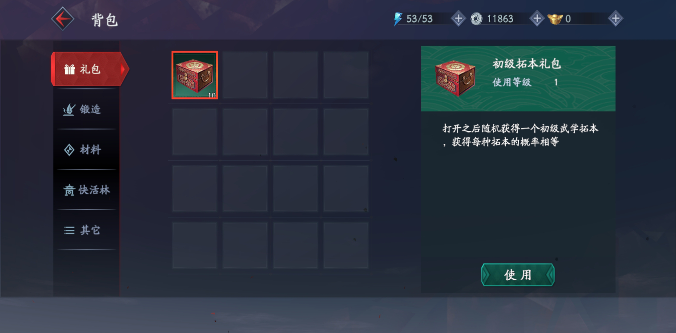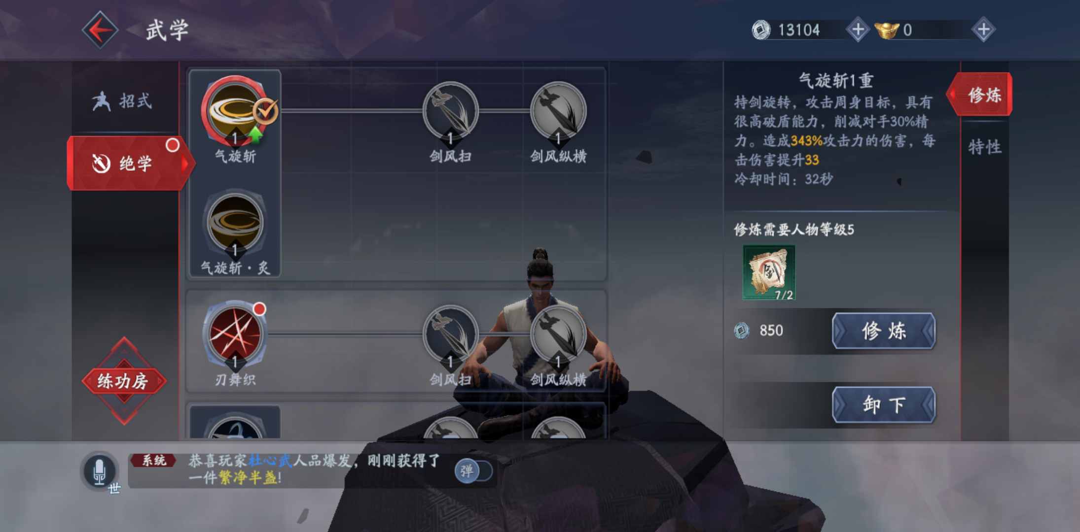 武学功能包含着招式与绝学两项,招式需等级升级来学习,绝学要考靠收集残券。