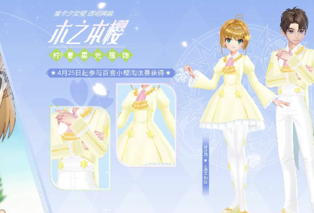 福利二:5月1日将上线大量精美的联名套装背饰,届时可领取樱之魔法套装——木之本樱/李小狼套装。另外,排位赛的奖励套装是悸动青春套装,淘汰赛的奖励套装为柠夏星光套装。无论是新补充的套装还是联名套装,都十分精美;近期星转盘上还推出了雪兔男套装,以及与各项联名对应的小可皮肤。