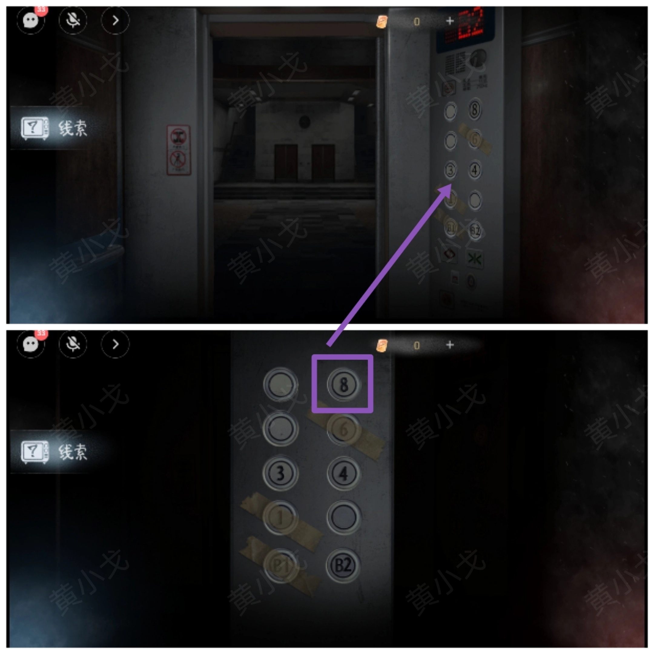 1.点击电梯按钮面板,按下八楼按钮