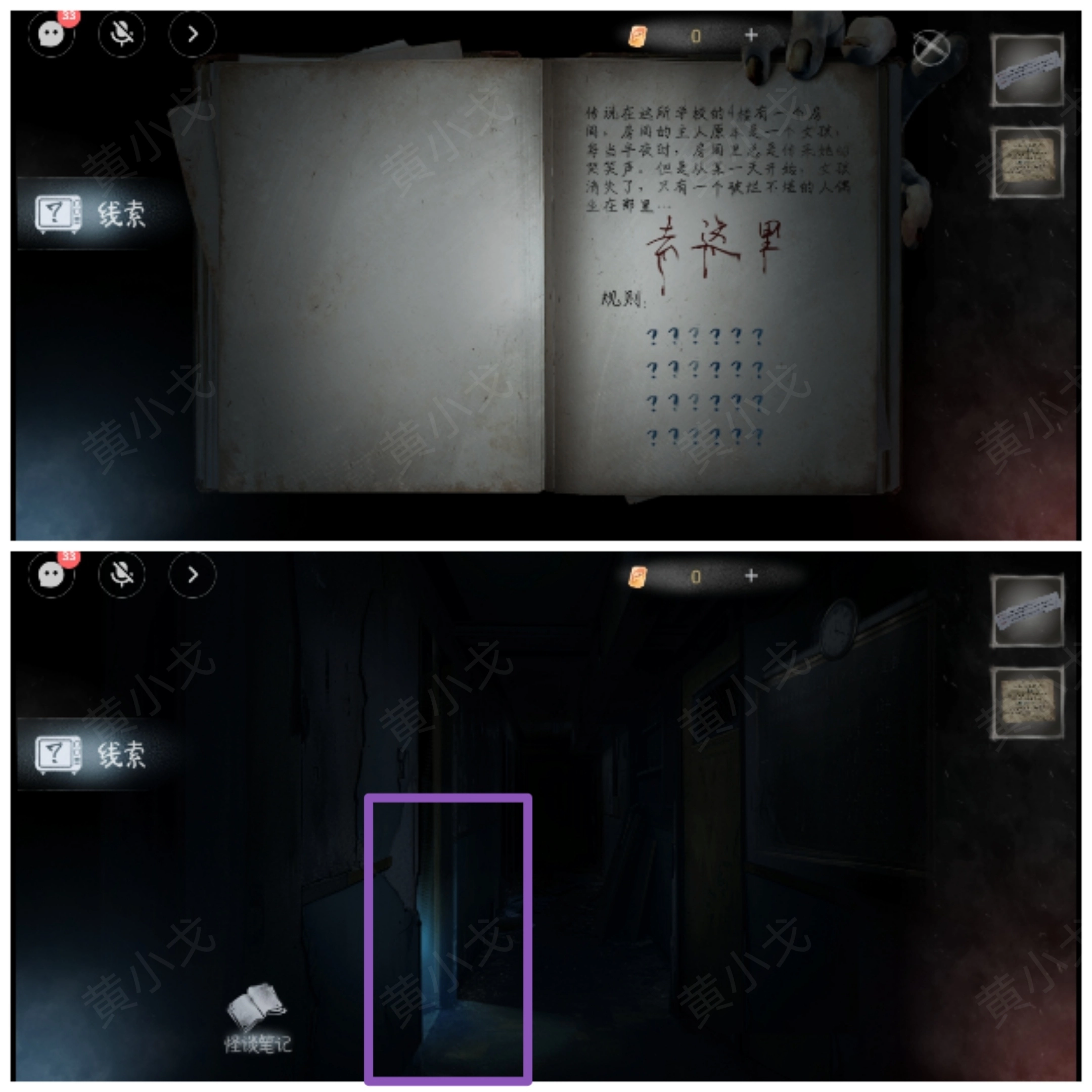 15.(4楼走廊)先看怪谈笔记;再点击亮光处,进入保安室