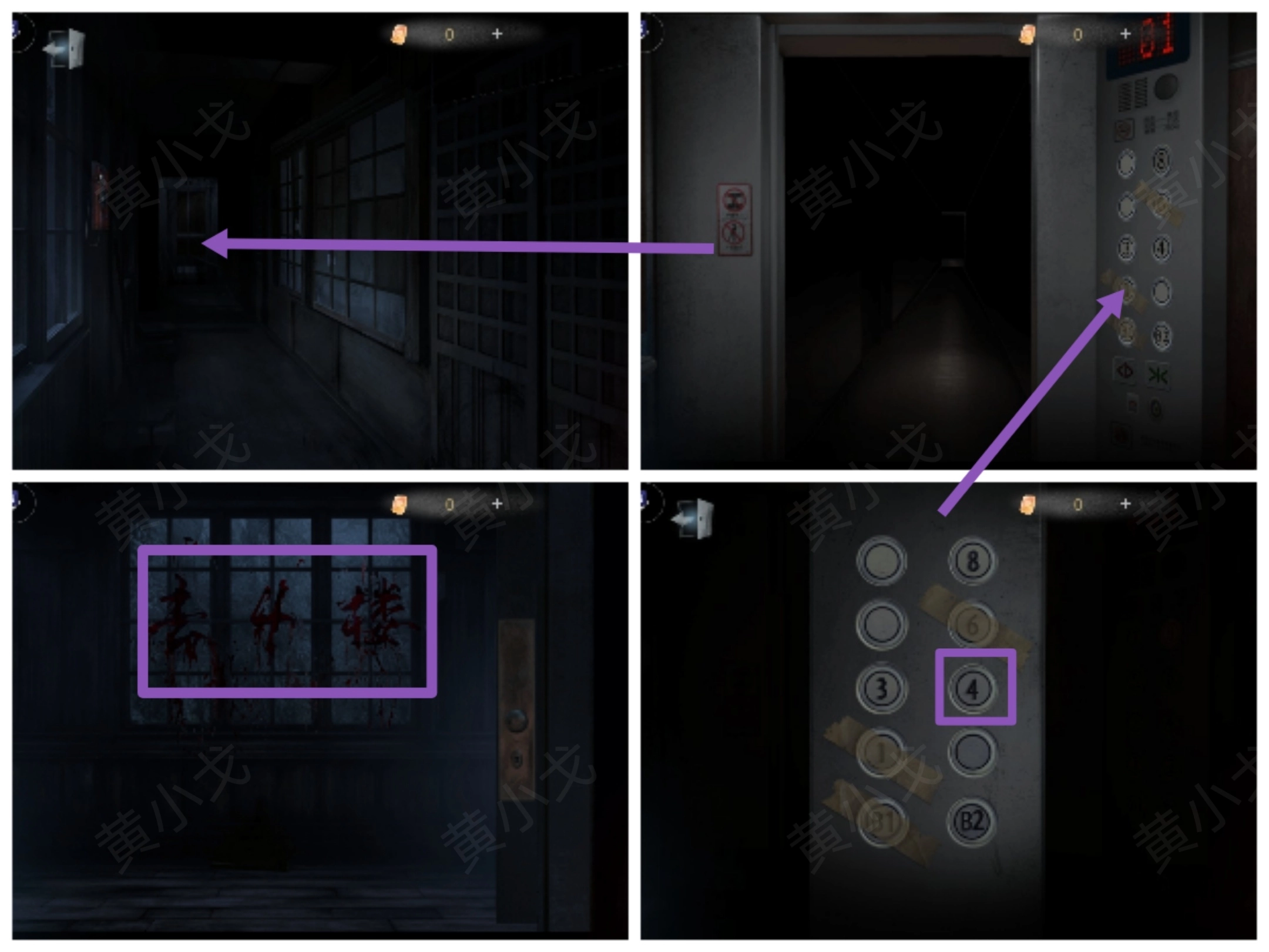 14.点击电梯,根据走廊上的红字,去4楼