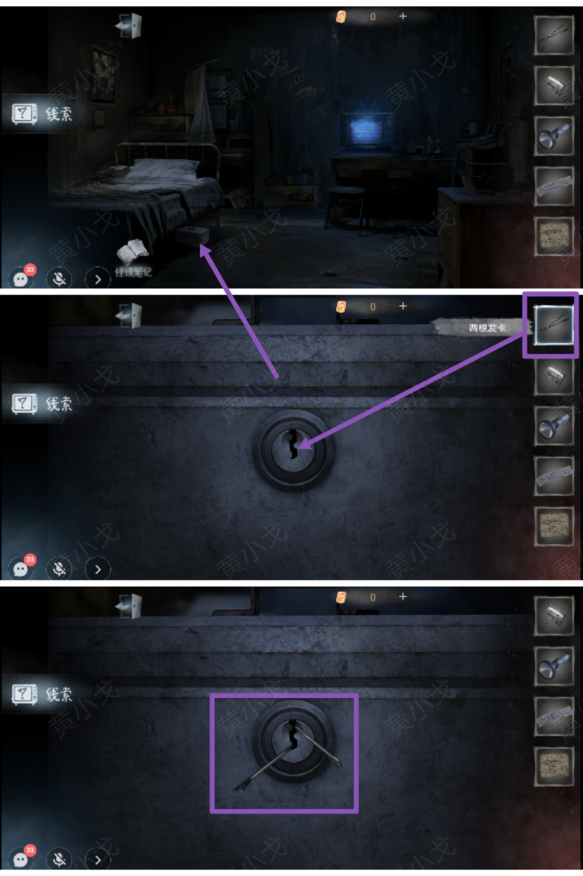 19.点击地上的工具箱,用【两根发卡】撬开(多点几次)