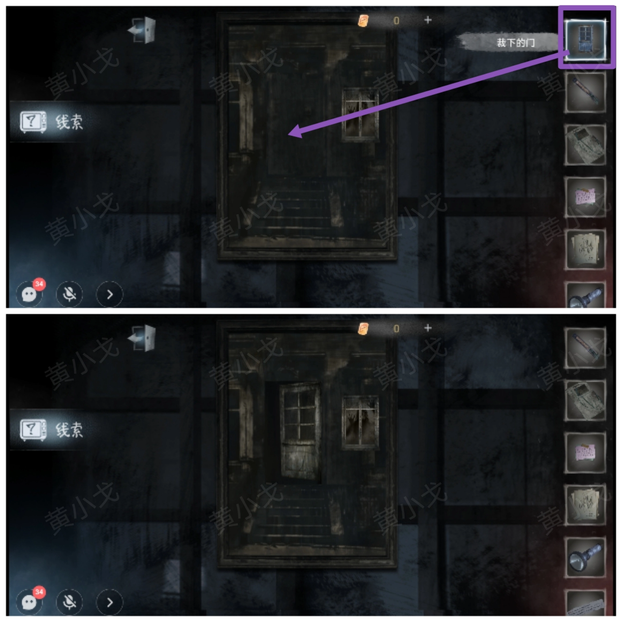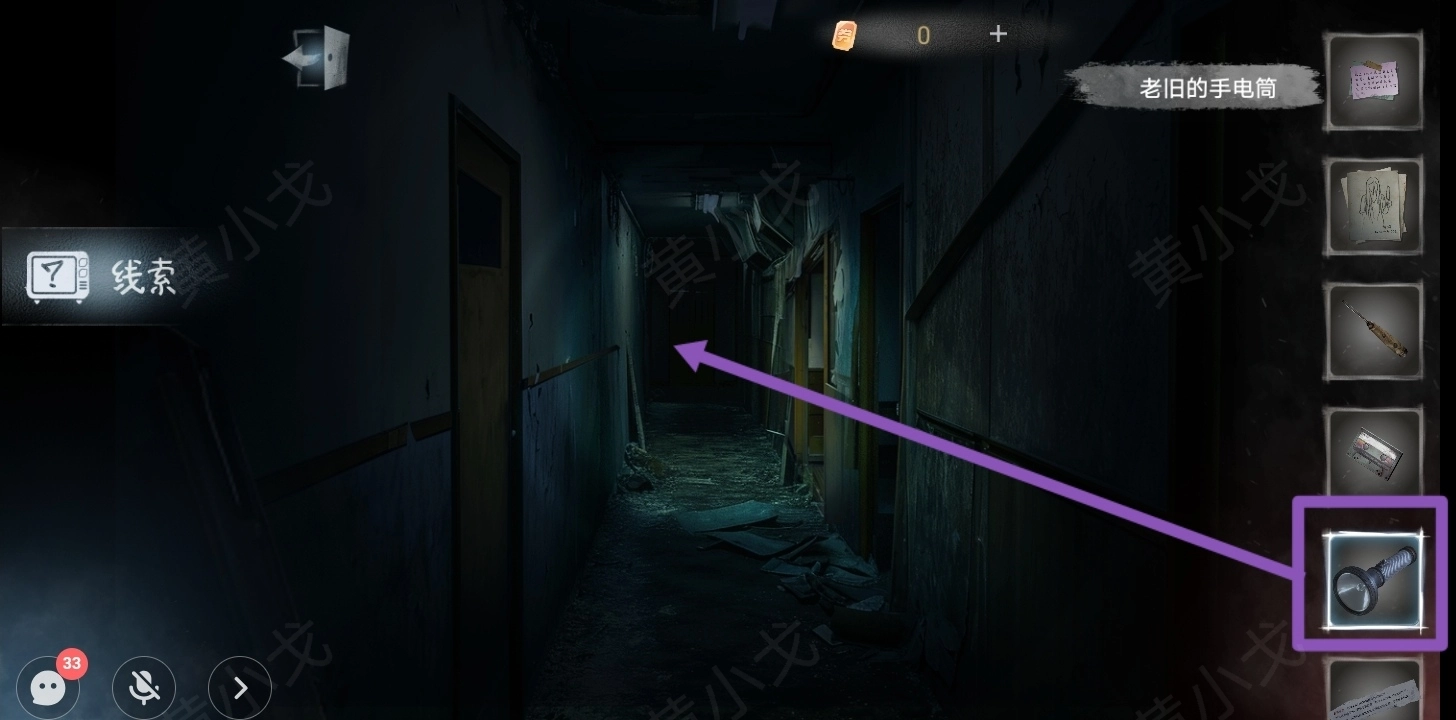 24.(4楼走廊)使用【老旧的手电筒】;点击黑板,撕下广告,获得【黑板上的留言】