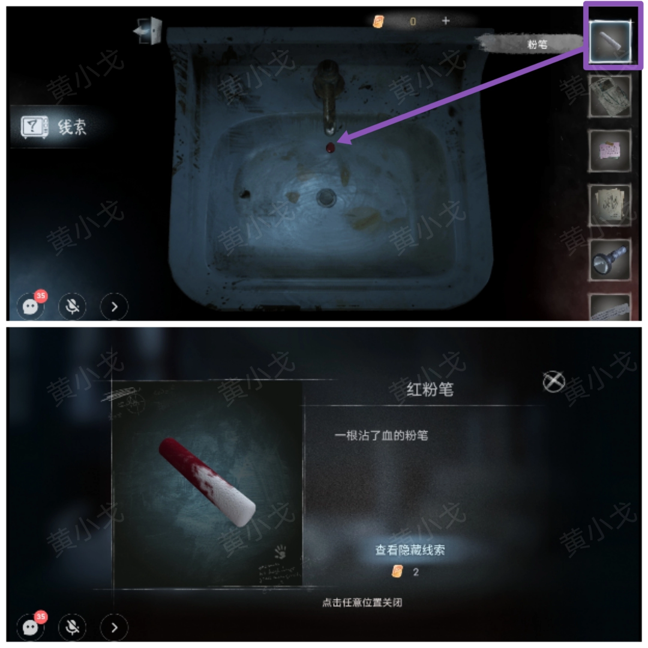 16.点击洗手池,用【粉笔】沾血,获得【红粉笔】