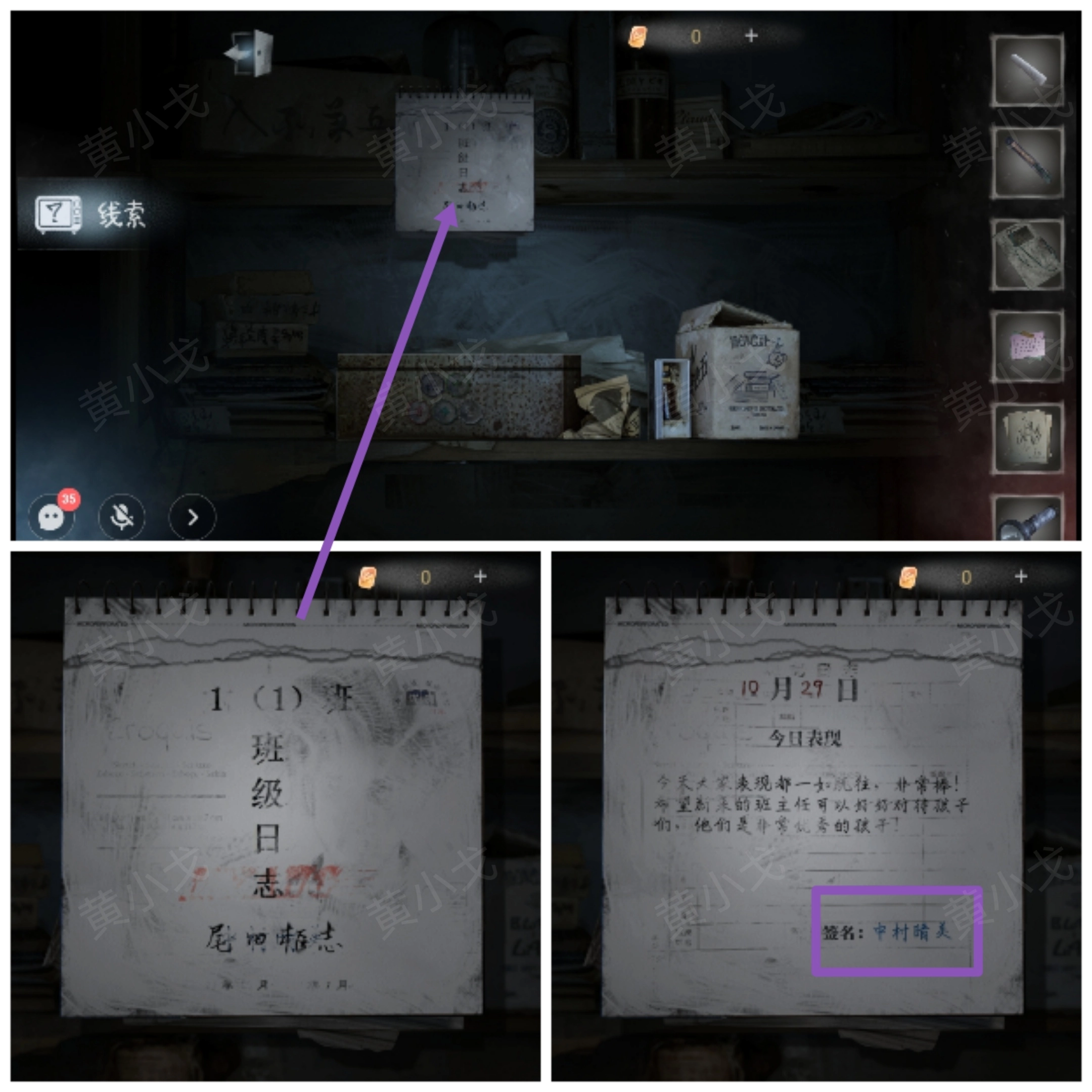 15.鬼走开后,查看班级日志,获得线索(新来的班主任叫中村晴美)