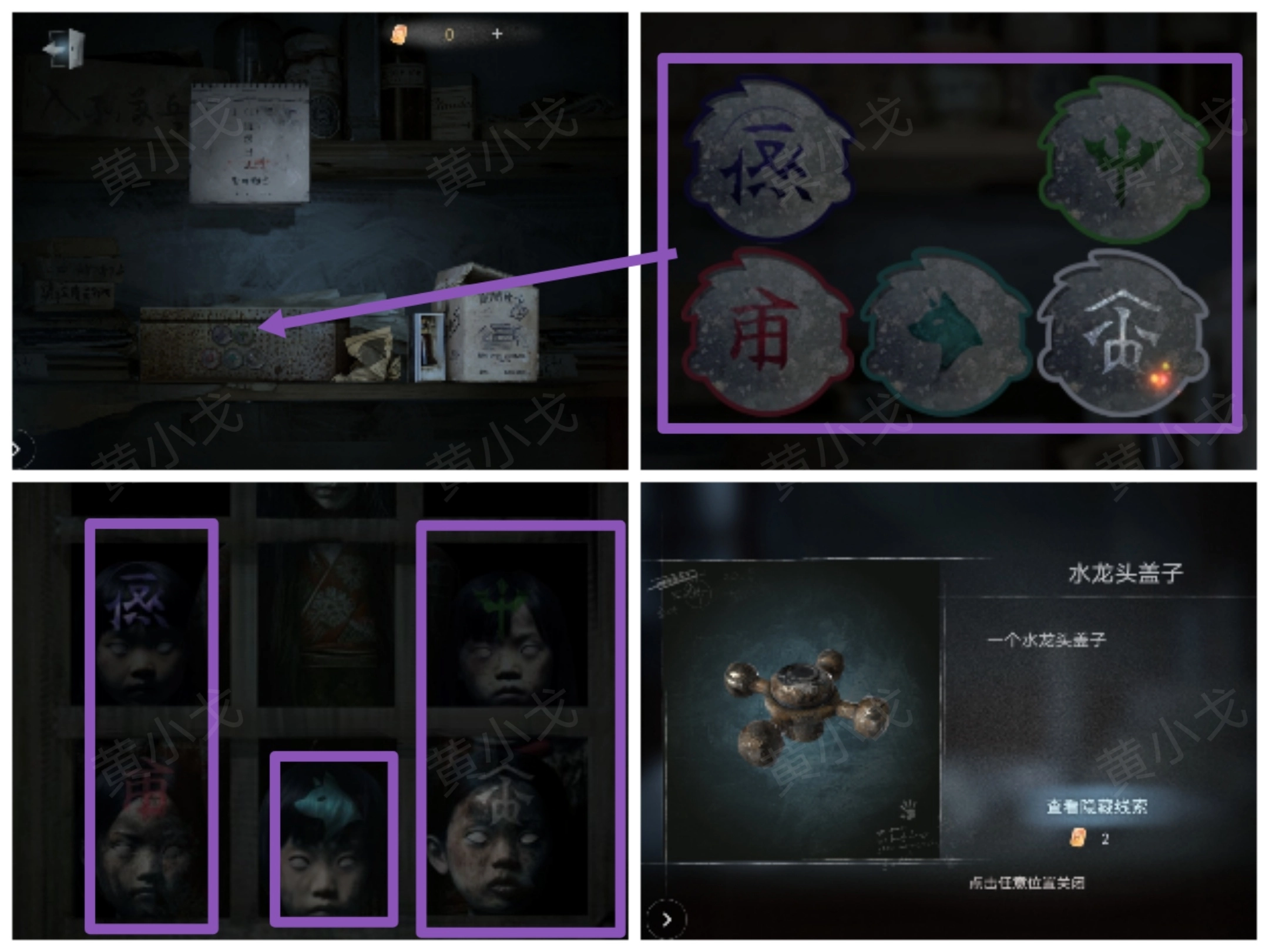 19. 轻点货架上的盒子,依据窗户上呈现的线索,对密码锁进行调整(蓝绿 红青白);成功打开盒子后,即可获取【水龙头盖子】