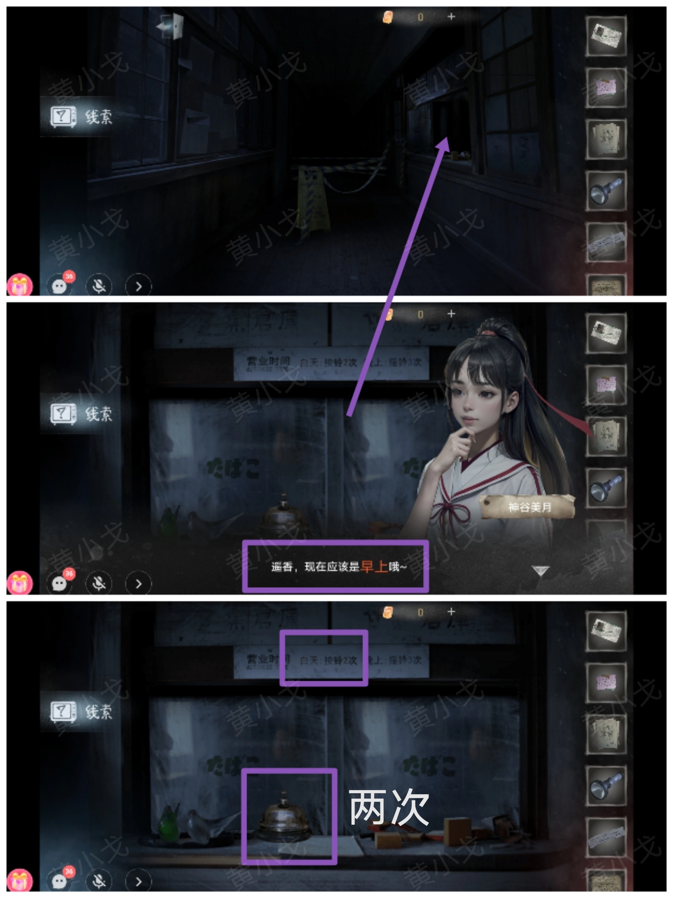 4.(4楼走廊)跟着星野遥香走,遇到鬼雾,使用【神乐铃】