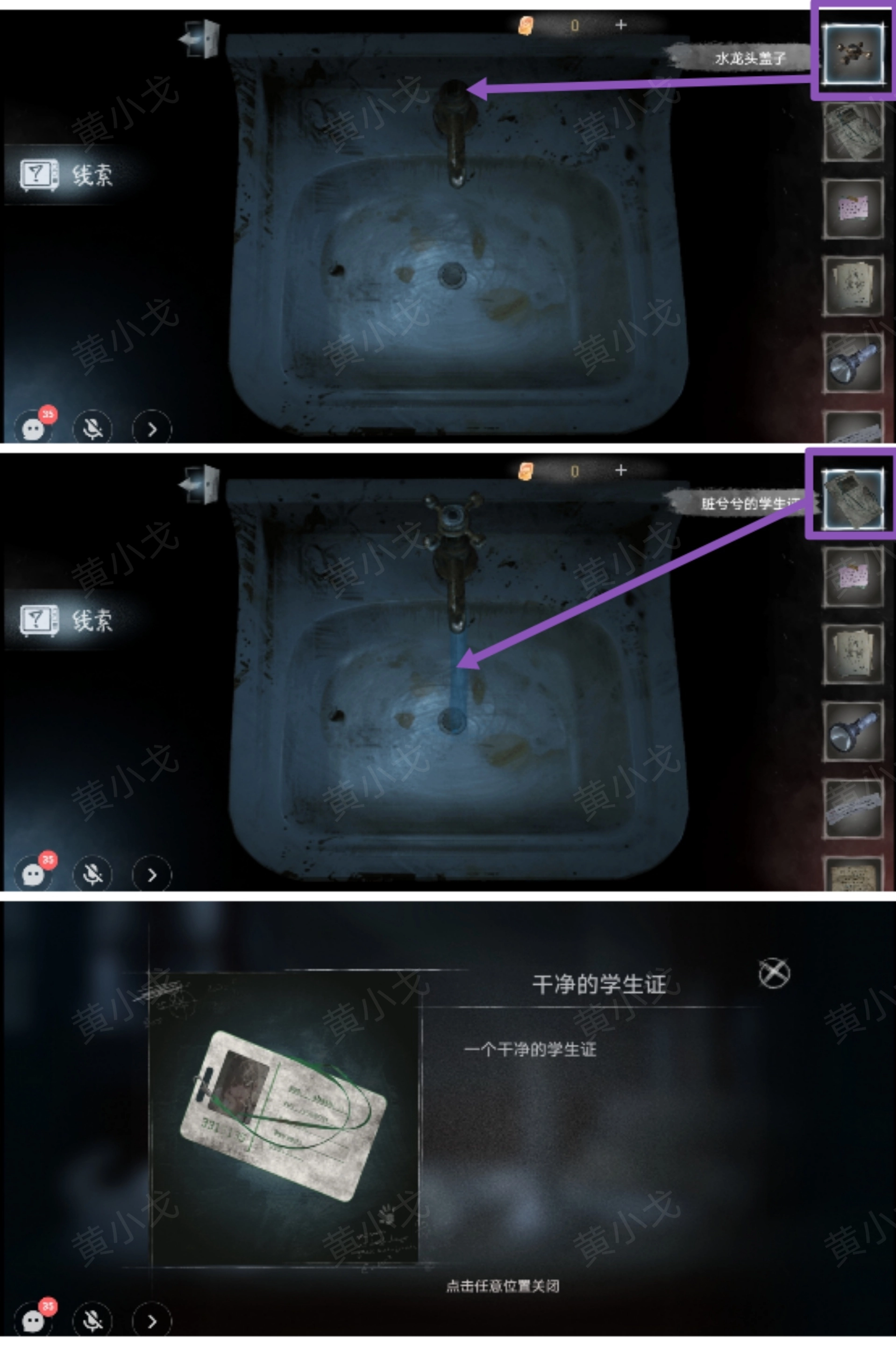 6.点击洗手池,装上水龙头盖子后清洗【脏兮兮的学生证】,获得【干净的学生证】