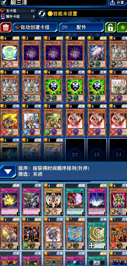 2准备21张攻击力低于1000、守备力高于1400的怪兽卡牌,之后直接自动挑战10级的爱得关卡就行啦。