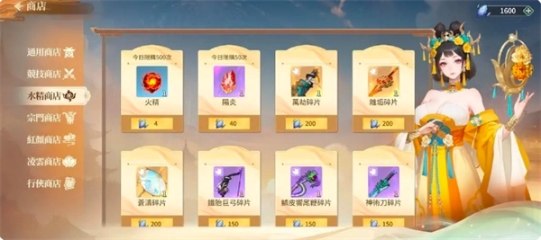 水精商店没啥好说的,看阵容配饰的武器来选择购买,注意:商店没有藏锋碎片,藏锋碎片只能通过氪金以及副本水精迷途来获得,450金3碎,且是随机的,不是稳定获得,所以一定注意
