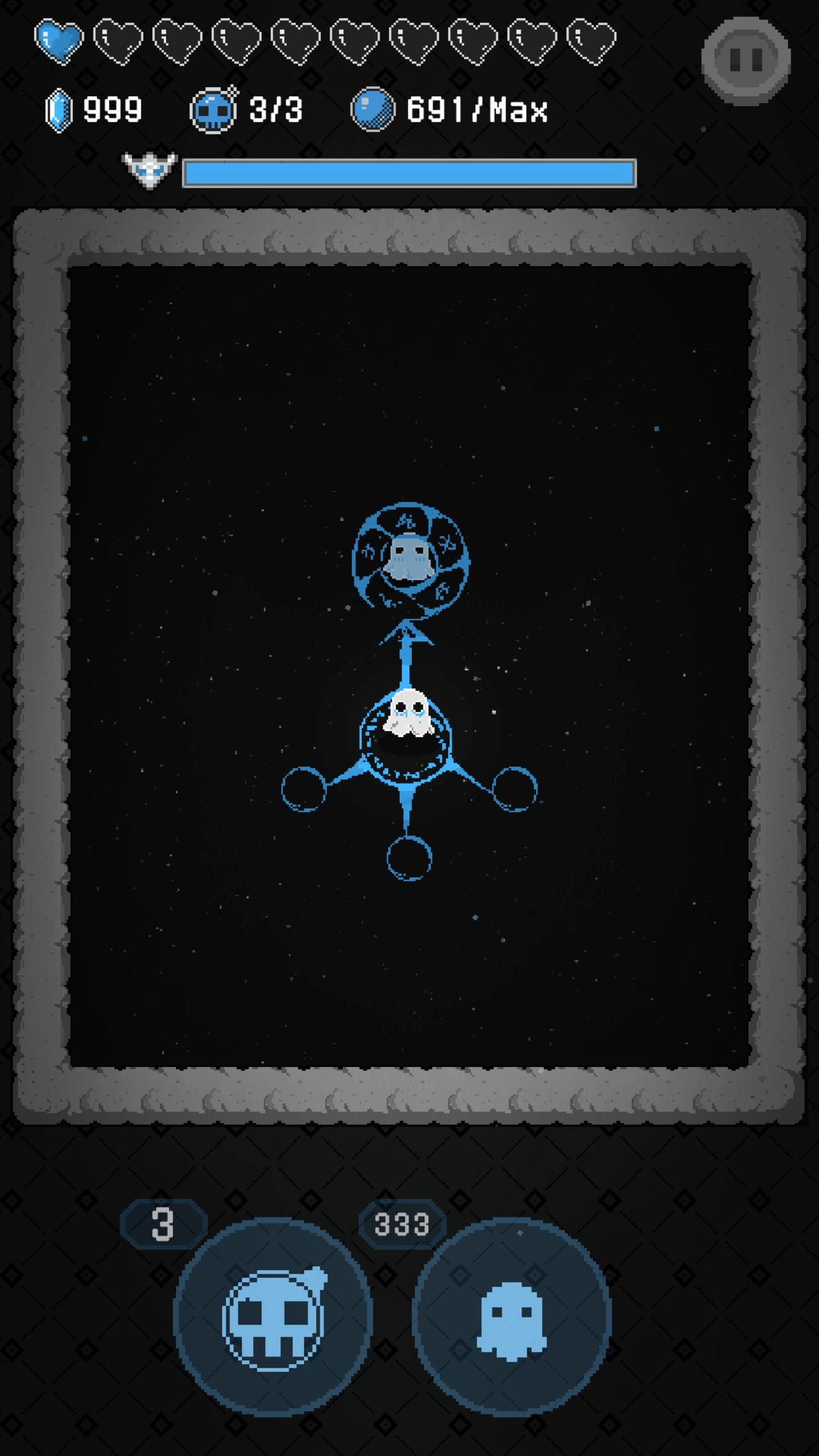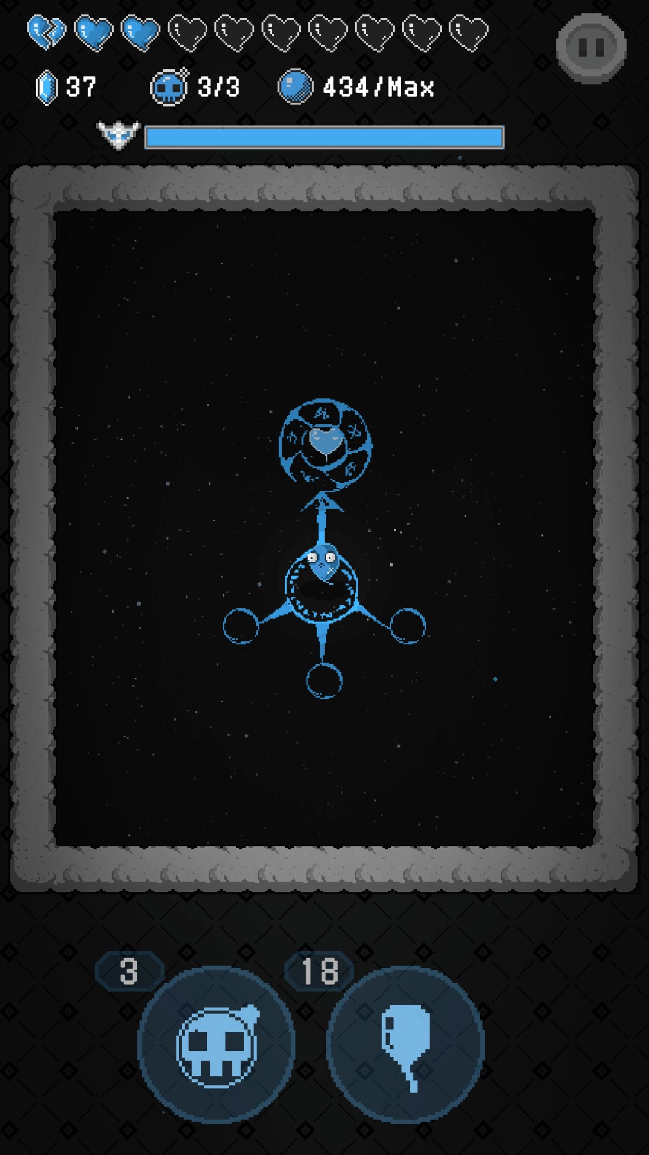 主动技能:耗费3颗宝石就能获取一枚炸弹,技能区域的展示与炸弹本身稍有差异。这枚炸弹会直接添加到炸弹数量当中(这点和锁先生不同)。它使用起来稍显麻烦,然而要是搭配黑卡,每走过一处都放上一枚炸弹,那感觉别提多畅快了(被小怪搞得糟糕的心情瞬间烟消云散)。
