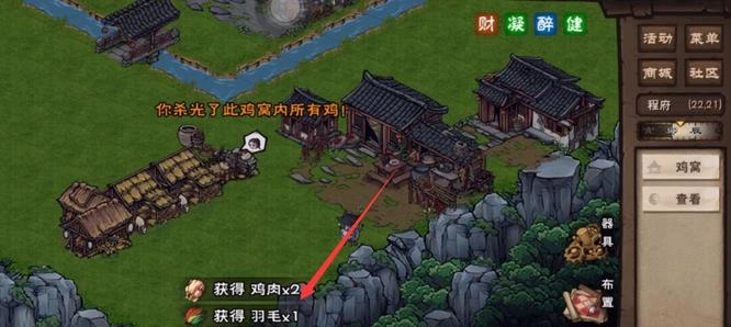 3、随后抵达洛阳城杂货摊所在处(坐标为24、29 ),在此购买家宅鸡崽,每只家宅鸡崽的价格是1两500文。