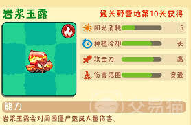 岩浆玉露对阳光的需求不大,性价比颇为可观。它能够在多种地形环境中栽种,具备出色的适应能力。此外,其冷却时间相对较短,能够更频繁地发起攻击,从而为玩家抵御僵尸的进攻提供持续的火力支援。
