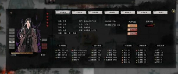 2、劲、式、录、经、诀、大法、神功以及秘卷都属于这些格子。道点这一属性决定了你能够装备的心法数量,它类似于某些游戏中的负重值,只有道点足够,你才能够装备更多等级更高、品阶更高的心法。