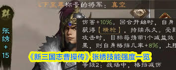 总之,在《新三国志曹操传》里,张绣是个值得玩家重视与培养的角色。只要合理运用他的能力,就能在游戏的征战进程中起到关键作用,助力曹操更顺利地统一北方,成就一番霸业。