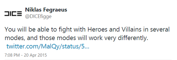 Niklas Fegraeus在Twitter上回应粉丝提问时表示,《星球大战:前线》里会包含多种模式,玩家能够和主角以及反派一起进行游戏,而且这些模式都各具特色。