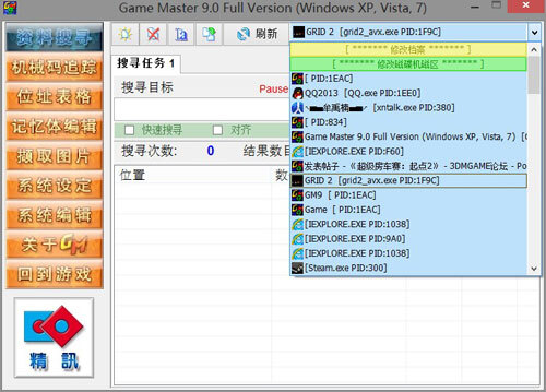 1. 首先下载gamemaster工具,在百度上搜索就能找到,我自己用的是v9.0绿色版本。下载完成后解压文件,接着打开steam平台,再启动grid2的主程序,进入到显示等级和金钱数的界面即可。
