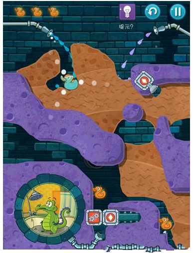 过关要求:要收集3只小黄鸭;给小顽皮弄些水洗澡!