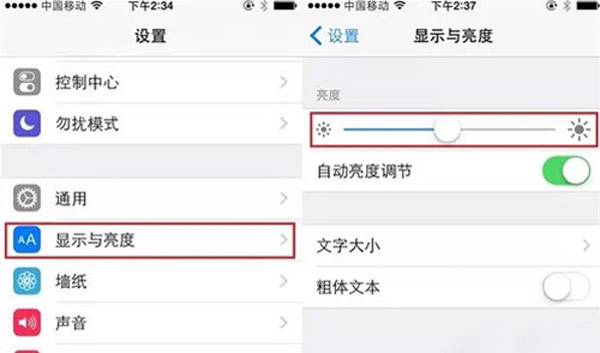打开“设置——显示与亮度”,屏幕背光是iPhone的耗电大户,把屏幕亮度降到最低能有效提升iPhone提升续航力。
