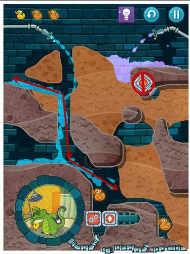 《鳄鱼小顽皮爱洗澡2》关卡12挑战模式一图文攻略:在下水道关卡12的挑战模式一中,主题为“保持分开”。此挑战模式下,玩家可用手指切开所有石头与泥土,但需特别注意两点:一是绝对不能让干净水和污水混合,二是要避免水接触到红色漏斗开关。