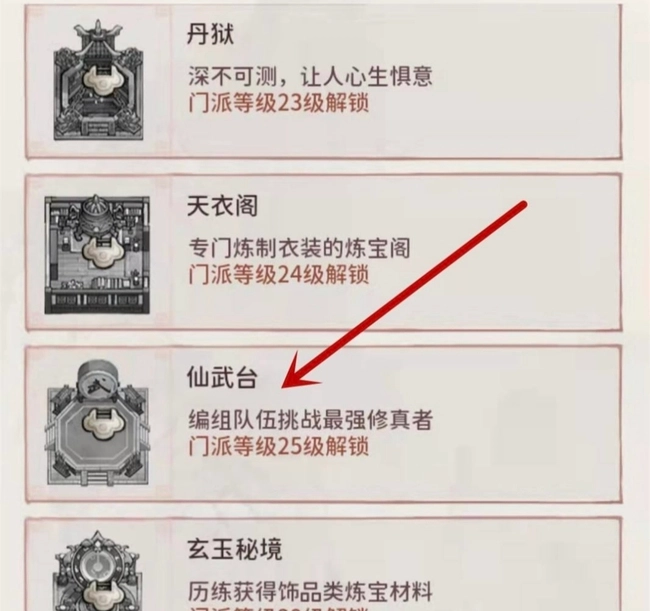 在《我的门派》游戏中,仙武台在什么位置呢?在这款游戏里,玩家能够通过招募获取更多弟子,消耗材料提升弟子等级,进而提升自身门派的等级。随后,可派遣弟子去完成各类任务,仙武台就有许多任务。那么,要怎么前往仙武台呢?下面是小编整理的仙武台位置相关内容,感兴趣的玩家不妨看看。