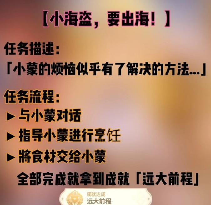 ⓷ 达成成就【远大前程】后,有一定概率触发后续的【小小的远行】系列委托,该系列包含三条分支,完成后无额外成就。