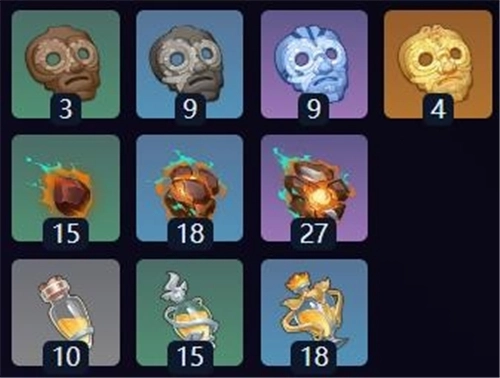 2、15个聚燃的石块、18个聚燃的命种、27个聚燃的游像眼