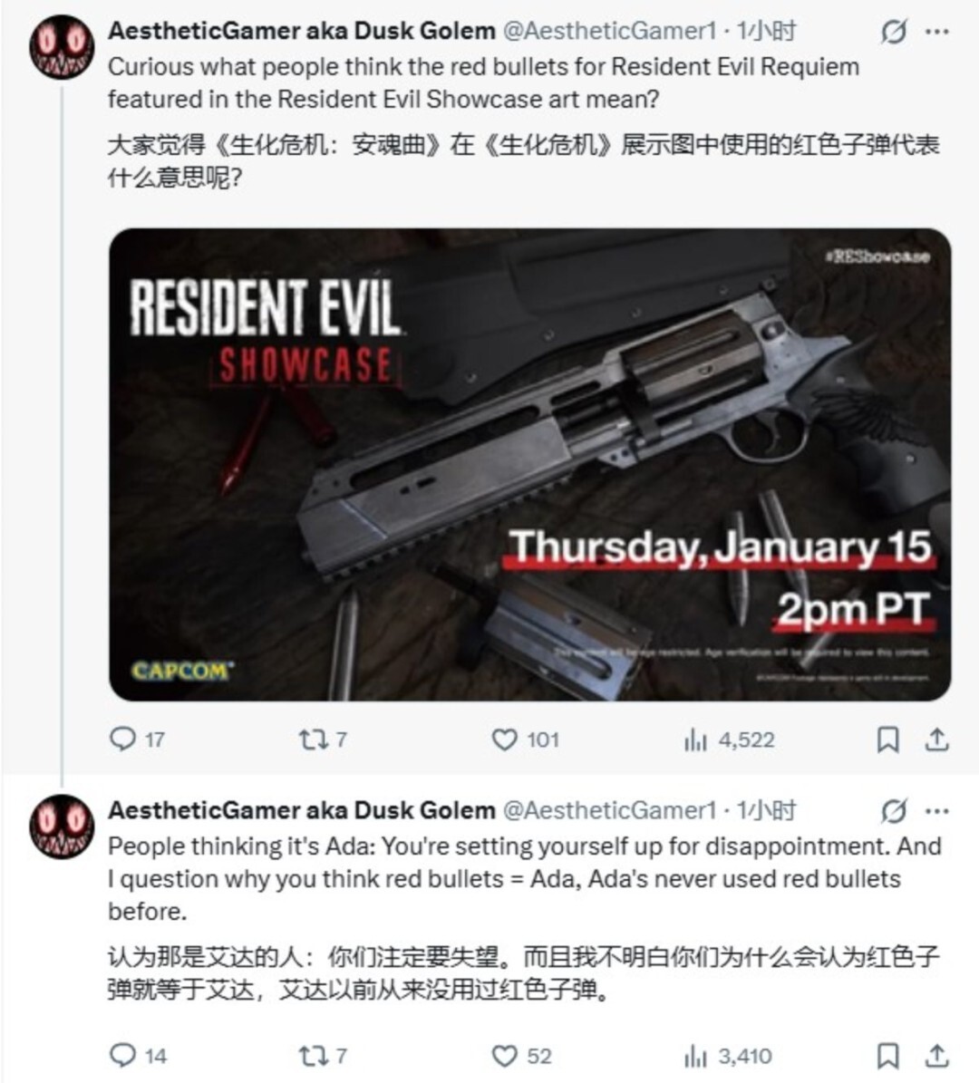 围绕红色弹壳的种种猜测,也引发了玩家对新作角色的诸多推断。之前有部分玩家从“红色”联想到艾达·王,不过知名业界爆料人AestheticGamer(也叫Dusk Golem)很快就否定了这一关联,他表示“艾达从来没用过红色弹药”,还提醒大家要是凭这个推测角色登场“或许会失望”。现在,又有传言称另一位经典角色——克莱尔·雷德菲尔德有可能会出场,但这一说法目前还没有得到任何官方的证实。