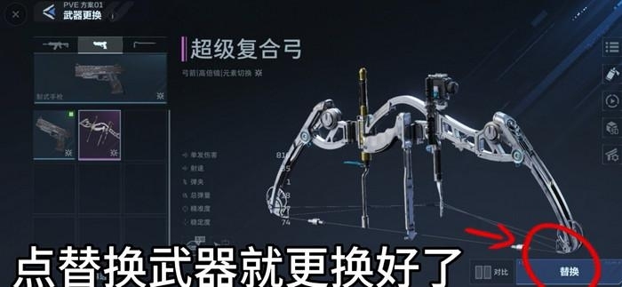 3.挑选新的武器,点击右下角的【替换】按钮;