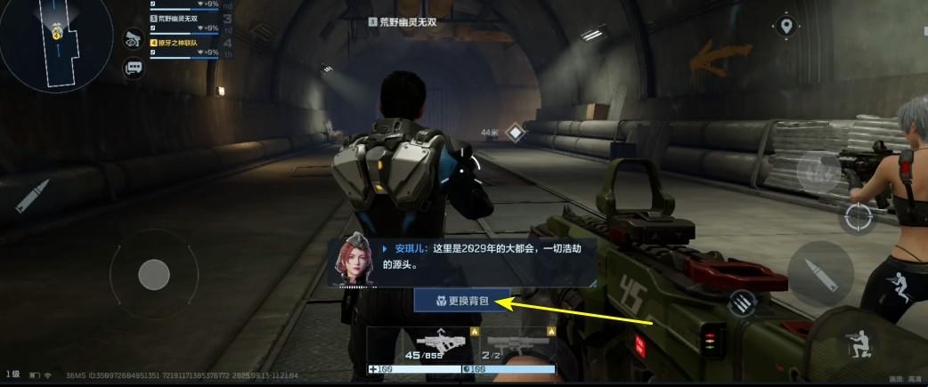 答:当角色死亡复活后(或是抵达商品补给站时),找到并点击如示意图中所示的【更换背包】按钮,就能自由切换1到6号背包了。