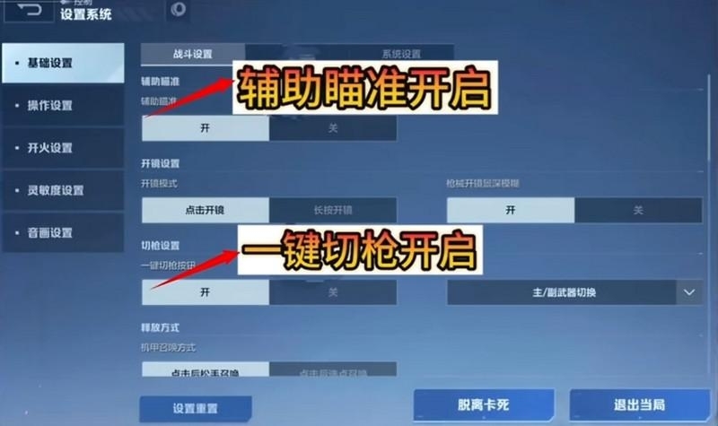 6、建议把设置中的【辅助瞄准】和【一键切枪】同时开启,这样效果会更好;