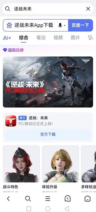 2.接着搜索【逆战未来】并定位到游戏的官方网站;