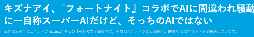 “羁绊爱”的日语原名是KizunaAI,这里的AI是“爱”的日语发音,并非当下流行的人工智能缩写AI。正是这个巧合,让部分不了解情况的媒体报道称其为AI虚拟美少女,进而引发了更多不明就里的反AI联盟玩家跟风吐槽游戏引入AI内容,《堡垒之夜》官方也因此不得不迅速回应澄清。