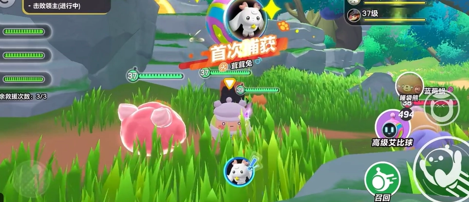 2、等兔子停下来时,长按捕捉键,几秒就能成功;要是怕兔子跑掉,也可以放个冰属性技能控住它,基本不会失败。