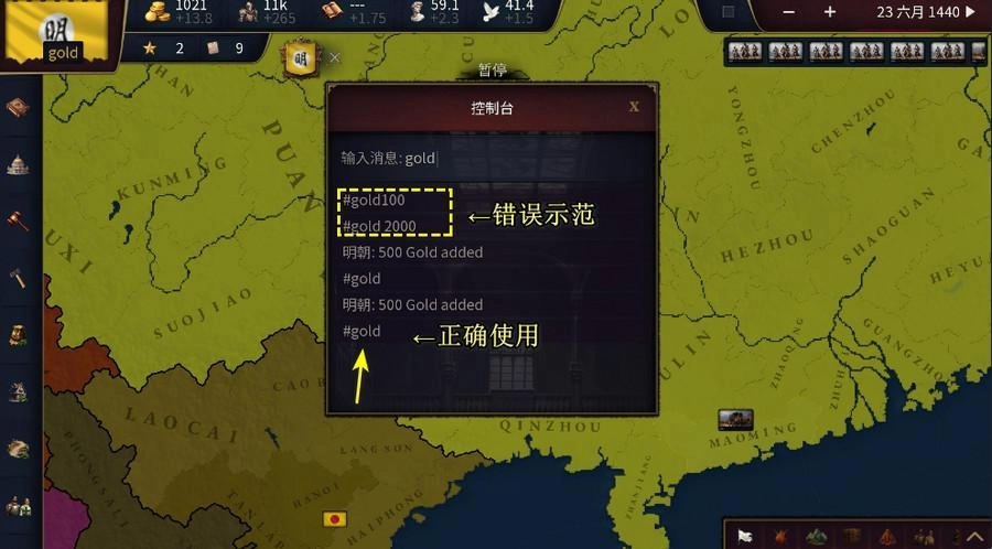 5、比如我这边添加金币,输入【gold】后按下输入法的回车键,就能增加500金币;