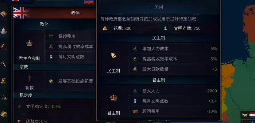 3、在左边第二栏,政体方面要改革,就看个人意愿了,有些政体更有利于促进经济发展,但可能不利于其他方面的发展,就不改了;