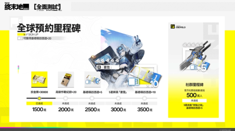 PC端与移动端全面支持跨平台数据同步,画面与操作体验同步优化升级。管理员提前进行事前预约可领取基础寻访凭证、五星干员「昼雪」等奖励,待官方社群追踪数达到500万时,将解锁特别奖励。