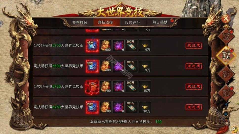 根据当日段位领取奖励(段位越高,每日宝箱内的道具奖励品质越优,可获得的大世界竞技令数量也越多)