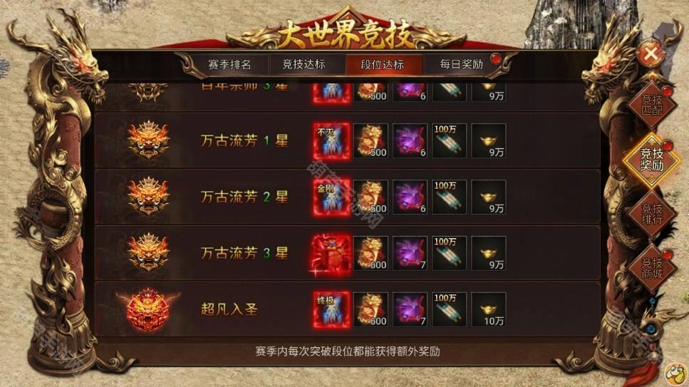 赛季期间,每一次段位突破都能解锁额外奖励,段位越高,奖励的品质就越丰厚(达成段位的星级突破同样可以领取对应的达标奖励)