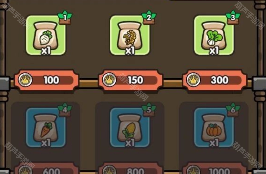 当前菜市场里有6个等级的种子,分别是萝卜种子、小麦种子、白菜种子、胡萝卜种子、玉米种子和南瓜种子。