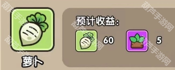 萝卜:种子100白金币,收益60颗,5经验。收获时间:1小时。