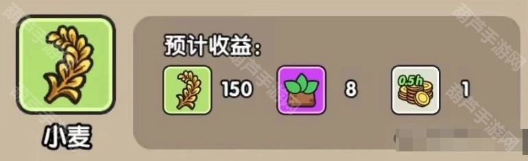 小麦:种子150白金币,收益150颗,8经验,1个0.5h金币,收获时间:1小时30分钟。